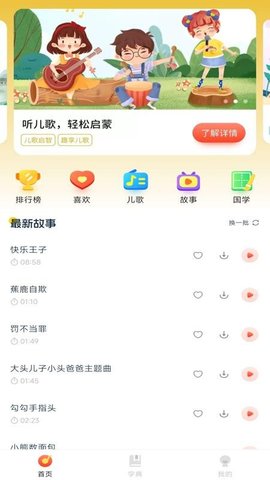 多样化的内容资源:涵盖了经典儿童故事、国学故事和儿歌等多种类型,满足不同年龄段儿童的学习与娱乐需求。
