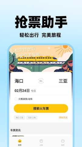掌上抢票助手是一款多功能的出行助手,为用户提供全面的智能出行服务,满足不同场景下的出行需求。无论是抢购火车票、了解出行资讯,还是进行出行记账,软件都能帮助您轻松应对各种出行挑战。通过智能的技术手段,随时随地获取所需信息,享受高效便捷的出行体验,确保出行计划的顺利进行。
