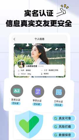 为了维护用户的安全与隐私,慕爱唯依实行严格的实名认证及学历认证,确保每位用户的身份真实可靠。