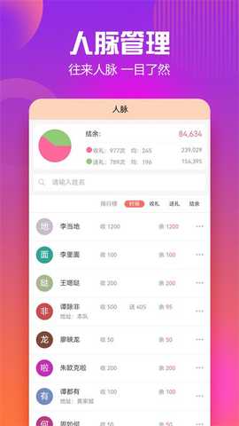 记录人情往来:系统提供详细的记录功能,帮助用户管理送礼和收礼的情况。