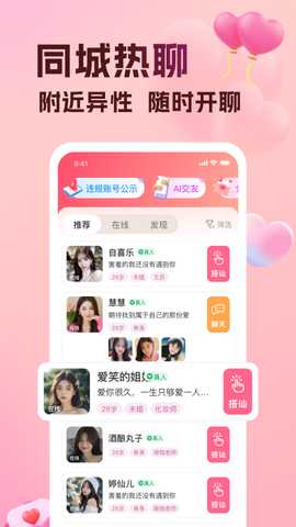 精准推荐:智能算法根据用户兴趣和地理位置,推荐合适的朋友,提升交友效率。