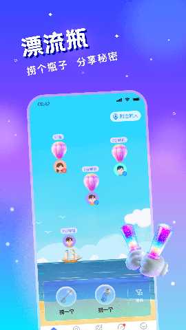 您可以选择漂流瓶功能,发送自己的心声,或是捡起他人的漂流瓶,了解不同人的故事,开启交流。