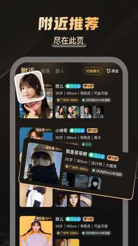 根据自己的兴趣和位置,利用智能算法推荐功能,快速找到合适的单身异性,提升约会的成功率。