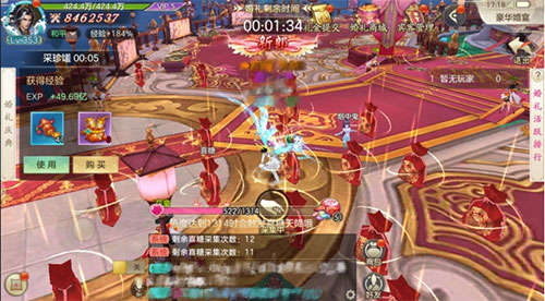 5、此时就会进入婚礼副本内,婚礼分为五阶段:堵门、婚礼庆典、抢绣球、拼酒、采珍馐。在剑玲珑手游中,如果跟新婚大家关系比较好,也可以随一份份子钱,只要点击礼金提交,就可以选择对应的份子钱金额(特别注意的是普通大家只能交9礼金元宝,V4大家可选交99礼金元宝,V5大家可选交999礼金元宝)。提交礼金可大量提高婚礼活跃度哦。