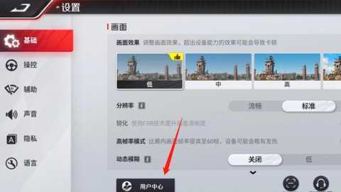 1.在游戏中时点击右上角的设置按钮进入到用户中心。