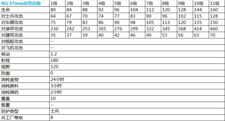 M1 57mm反坦克炮可以有效针坦克部队,同等数量的反坦克炮和轻型坦克,反坦克炮以超长的攻击距离可以在有视野的情况下提前驻扎,先出手攻击,让坦克部队在来的路上就已经损失大半,从而实现损失最小、输出最大化。
