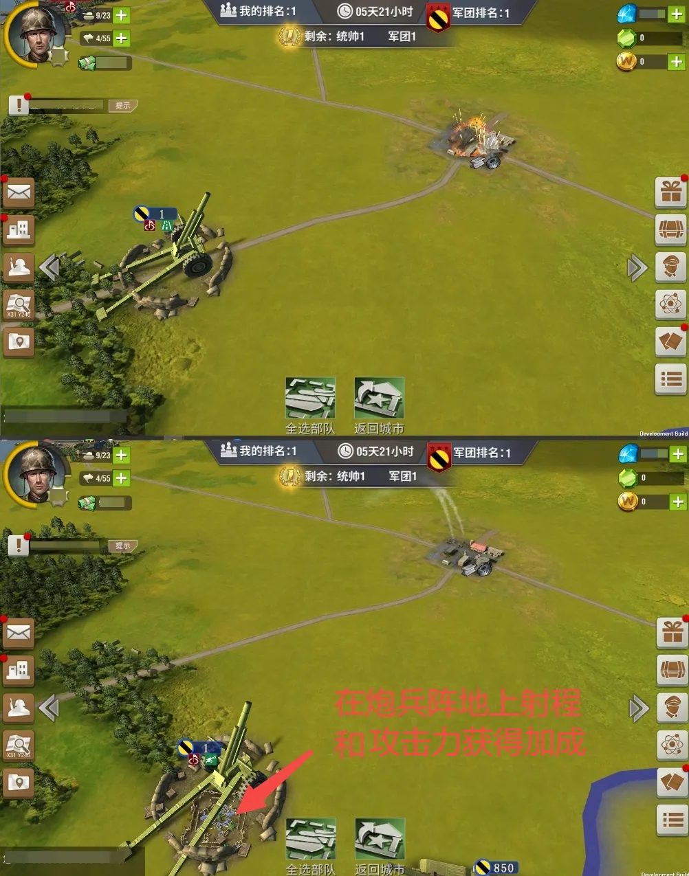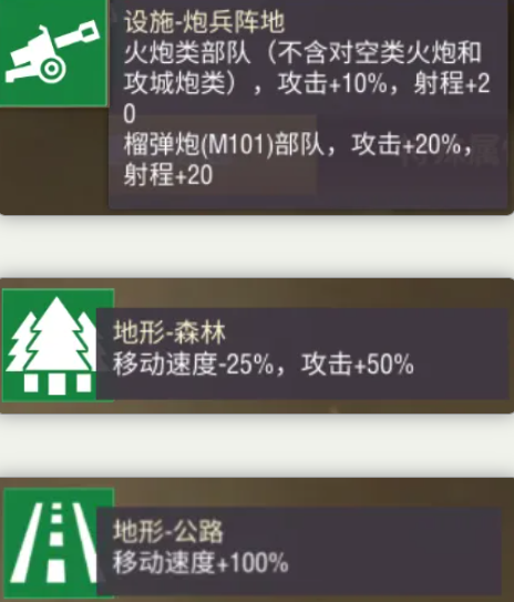 火炮类部队于炮兵阵地内 攻击+10% 射程+20