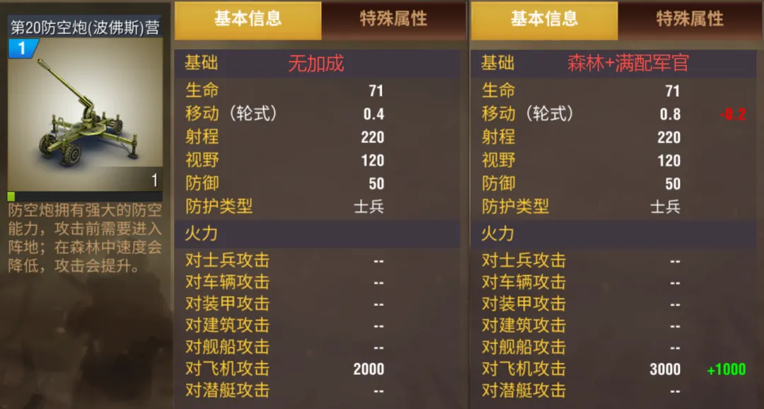 ②、炮兵阵地对波佛斯40mm高射炮没有加成效果
