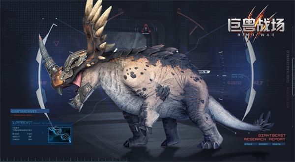 【银斧巨角】巨大的长角作为巨角犀主要的攻击武器,利用高强度合金改造,不仅能增加长角攻击力,还能一定程度强化撞击抗性。