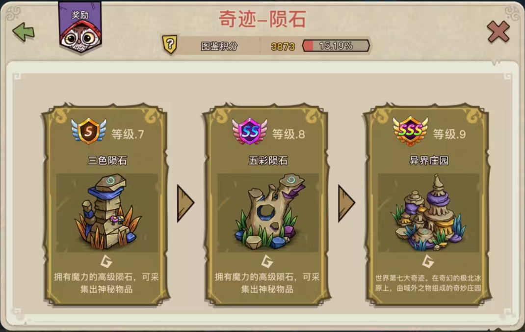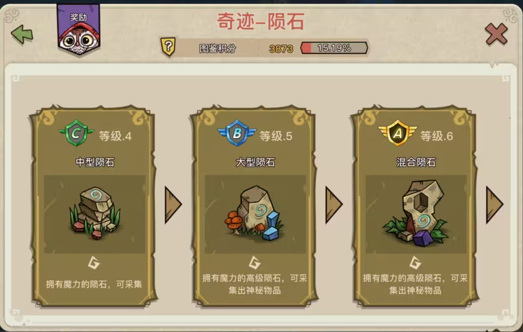 满级陨石点击可出蜂鸟蛋、蜂鸟蛋巢、三级免费宝箱、三四级矿脉。采集可出一二级仙人掌和二级矿脉。