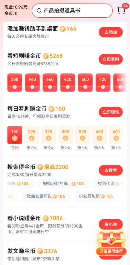 1、今日头条极速版提供了签到赚钱、走路赚钱、睡觉赚钱、吃饭赚钱、看广告赚金币、邀请赚钱、视频赚钱、小说赚钱、游戏赚钱等多种方式。