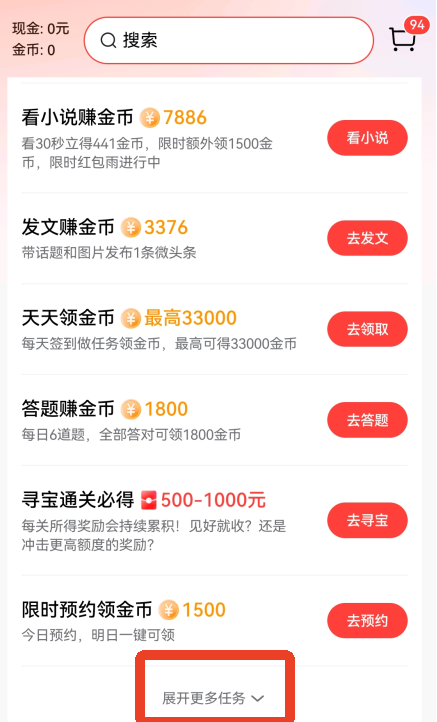 2、下滑点击【展开更多任务】,大概需要点两次,有很多任务。