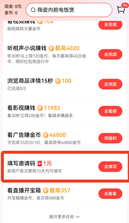3、直到你看到【填写邀请码】,点击右边的【去填写】。