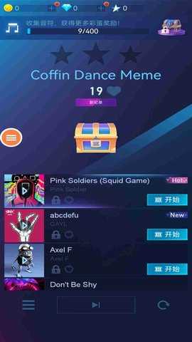 1. 单人模式玩家可以选择自己喜欢的歌曲进行挑战,尽量在最短时间内点击所有黑色钢琴块,提升自己的分数。