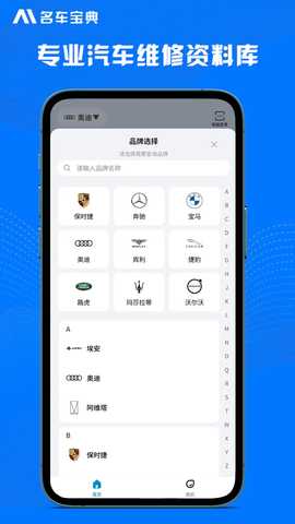 AI名车宝典支持多种车型,涵盖了市面上主流品牌,根据自己的需求选择相应车型进行查询。