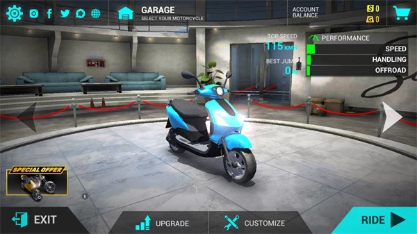 摩托车升级:通过完成任务和比赛,可以获得资源,用于升级摩托车的性能和外观。