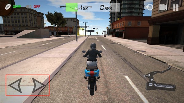 通过屏幕左下角的按钮来控制摩托车的行驶方向。