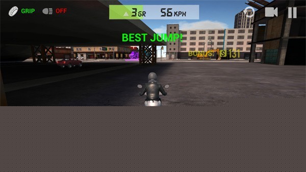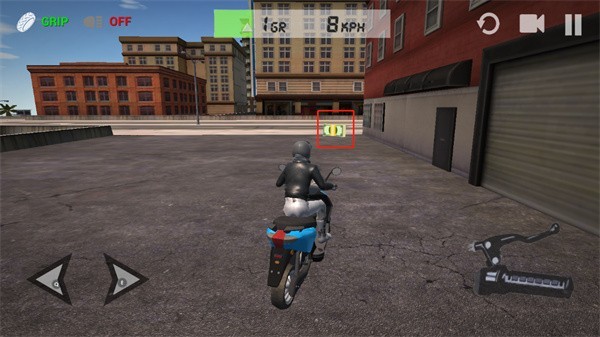 点击刹车按钮可进行刹车操作,若按住刹车按钮不放,摩托车则会倒车。