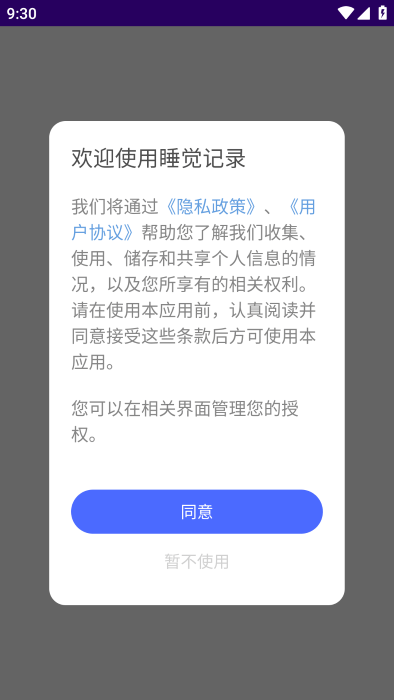 打开软件后,请先查看隐私政策和用户协议,确认无误后点击“同意”,即可进入软件使用界面。