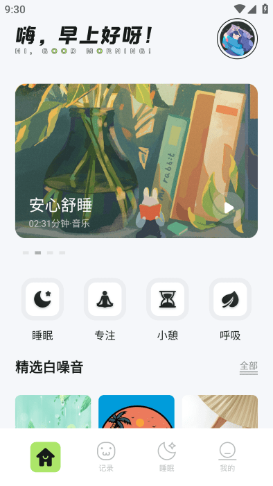 3. 助眠音频播放:提供多种助眠音频,如自然声音、白噪音等,帮助用户快速入眠。