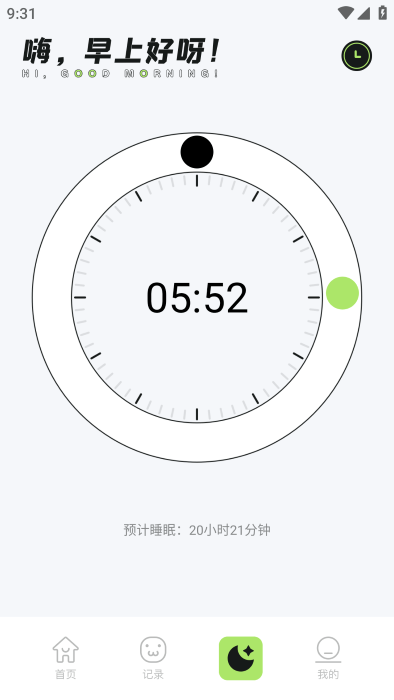 1. 睡眠时间记录:一键记录入睡时间和醒来时间,自动计算睡眠时长。