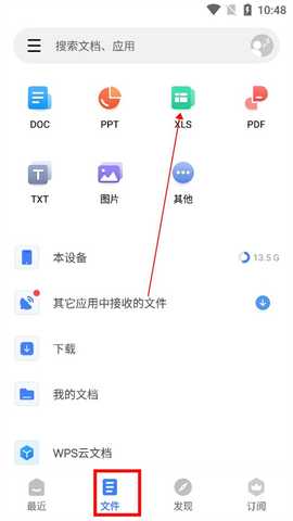 1、首先进入wps office lite手机版当中,进入文件板块,点击“XLS”可以查看手机内所有的表格;