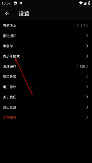 2. 进入设置界面后,选择“青少年模式”选项。