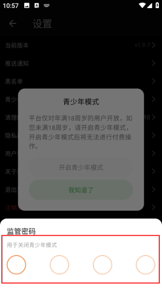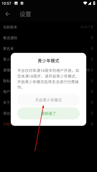 3. 点击后会弹出确认窗口,选择“开启青少年模式”。
