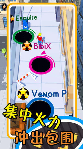 2、竞技场对战:游戏设有多人对战模式,玩家可以与其他黑洞进行实时对战,争夺更高的分数。
