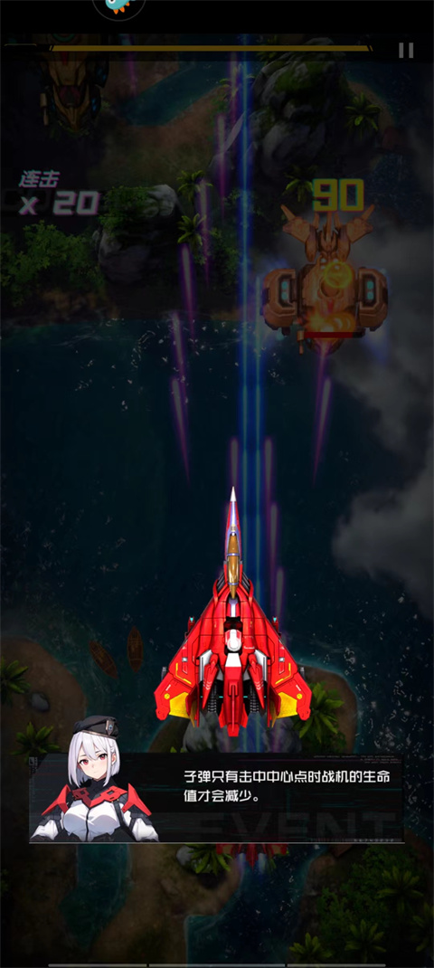 玩家需精准控制射击目标,只有子弹射击到敌方战机中心时,其生命值才会减少。