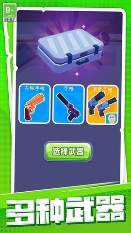 2、多样武器:游戏中提供了多种武器选择,包括刀、手枪、冲锋枪、苦无和飞镖等,玩家可以根据自己的喜好选择武器,享受刺激的战斗体验。