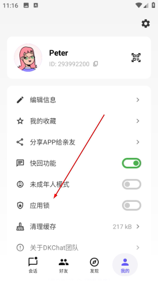 2. 在个人中心页面,找到“应用锁”选项并点击进入。