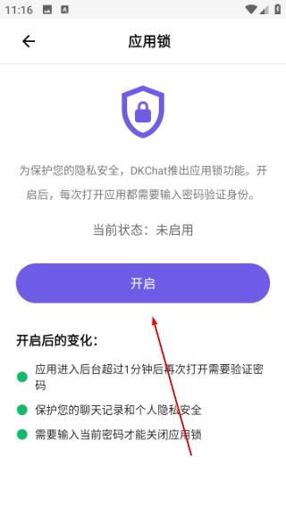 4. 设置6位数字密码,即可完成dkchat应用锁的开启操作。
