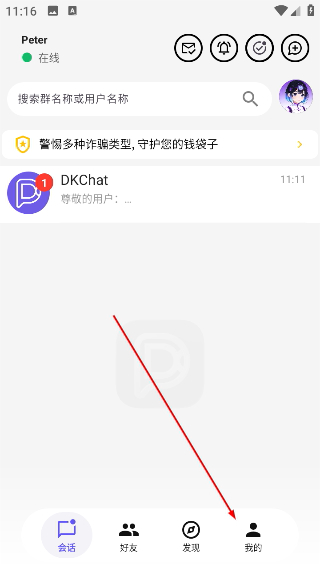 1. 打开dkchat应用,点击“我的”进入个人中心页面。