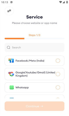在本站下载软件后,首先打开软件界面,输入所需的国家和服务名称。若列表中没有所需的服务,可以选择任何其他选项以继续操作。