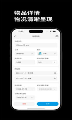 高效的记录流程:物品添加和修改的流程设计简便,快速完成记录,节省时间。
