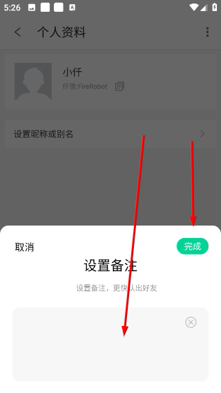 4. 在备注设置弹窗中输入备注内容,点击“完成”按钮,即可成功为好友设置专属备注。