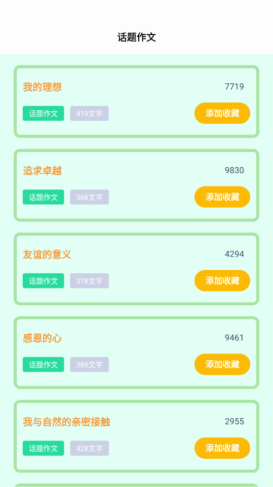 收藏功能:将喜欢的作文素材进行收藏,方便随时查找和学习。