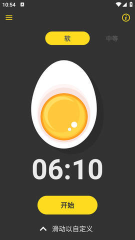 完成设置后,选择想要的蛋口感,软、中等或全熟,点击开始,软件会为你提供实时倒计时,确保每次煮蛋都能达到理想的效果。