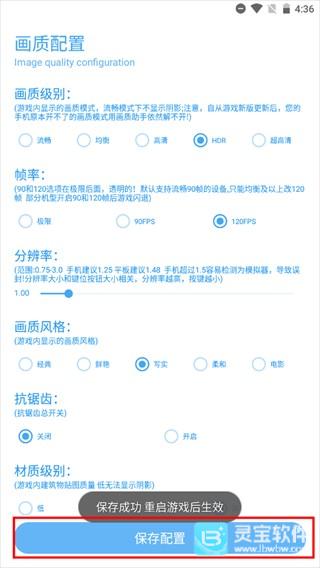 3、选择好自己想要的配置,点击“保存配置”,重新打开游戏即可