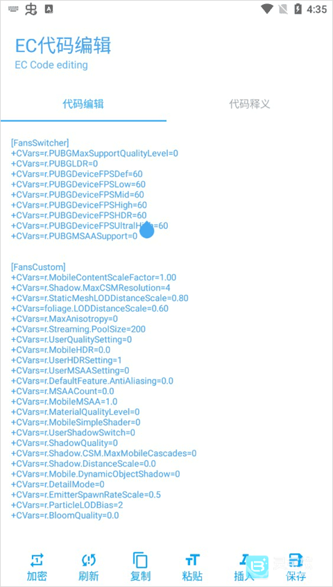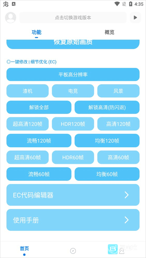 代码编辑功能:允许用户自行调试画质代码,以达到最佳游戏效果。