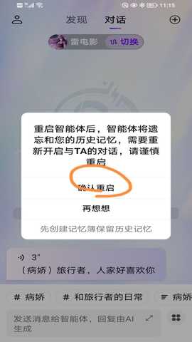3.APP会弹出这样一个页面,点击【重启智能体】按钮