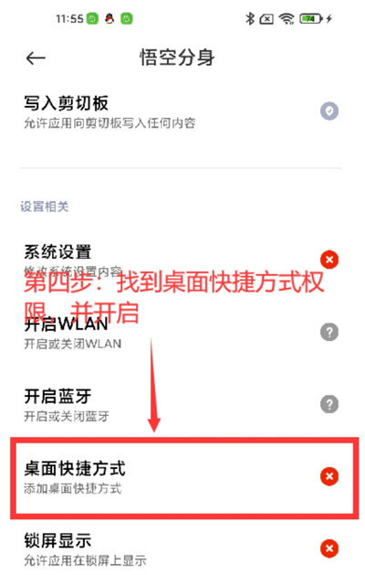 用户需先删除旧的快捷方式,进入分身详情页,点击放置桌面,设置权限后返回软件,点击已开启,等待提示完成添加。