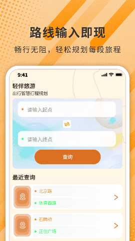 通过输入起点和终点,轻伴悠游能够快速提供多种公交出行方案,帮助用户选择最优路线。