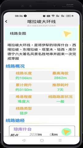 围绕每条经典徒步路线,软件提供详尽的攻略和注意事项,帮助用户更好地了解目的地的特色和挑战。