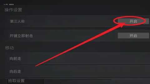 3、最后,在操作设置页面点击开启第三人称即可。