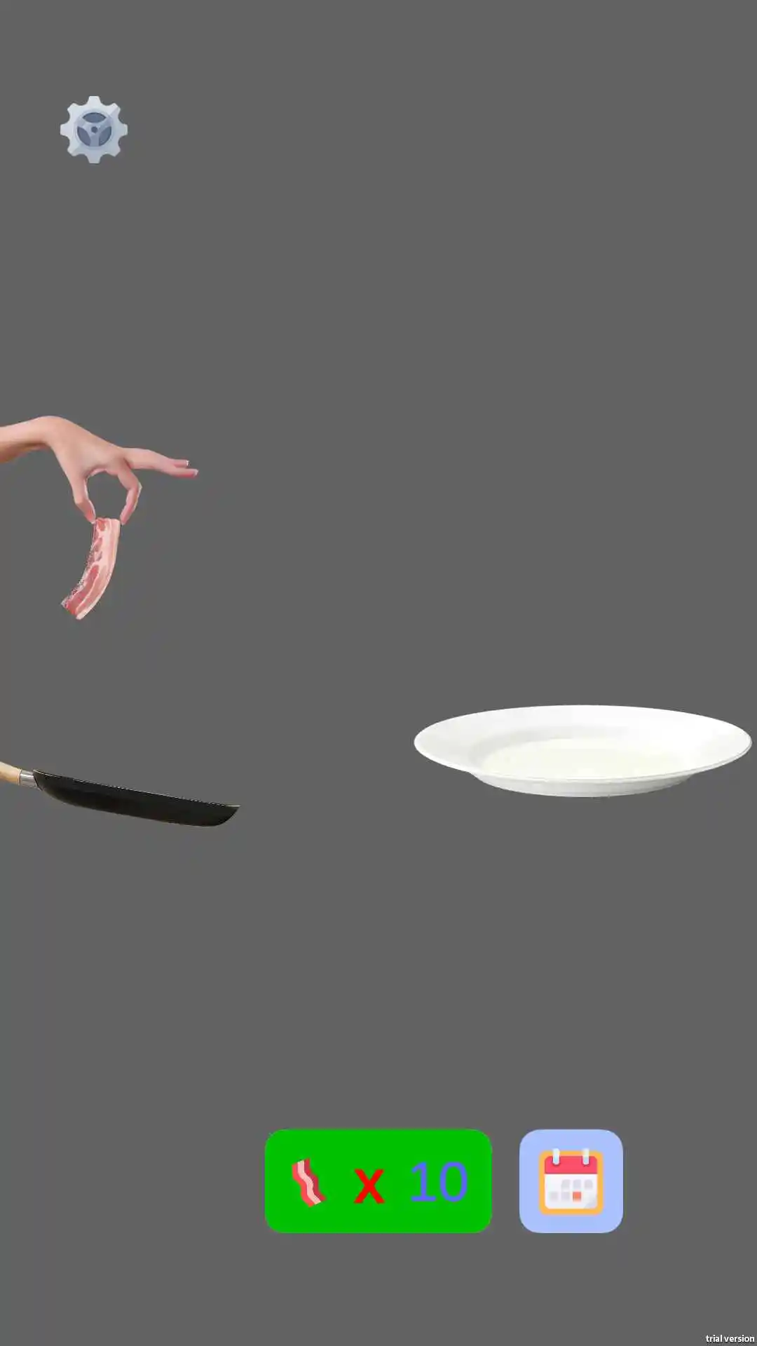 接下来,通过点击屏幕控制锅的移动,掌握好时机与力度,将培根准确地抛向目标物体,确保培根能够稳稳落在目标上。