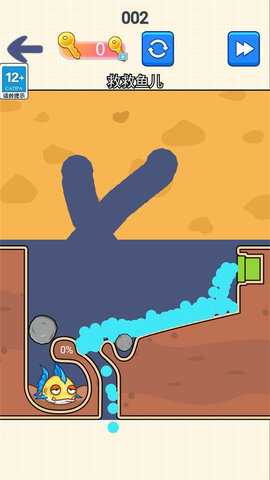 1、玩家可以选择不同的拯救方式,通过划线来改变水流方向,帮助小鱼儿获取水源,避免危险。