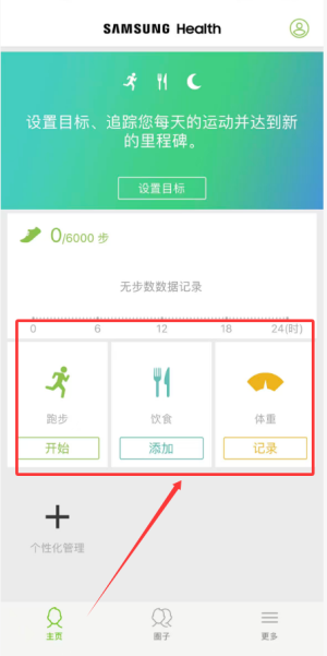 在本站下载并安装三星健康,运行软件后进入首页,可直观查看步数、运动、饮食、睡眠质量等健康数据。