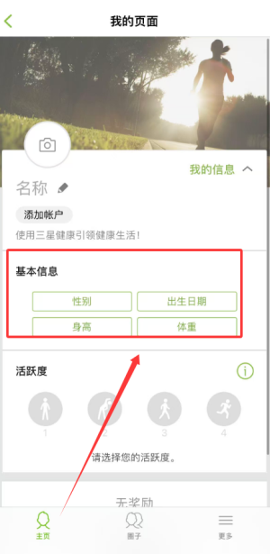 4、“我的”页面支持填写身高、体重等基本信息,打造专属的健康数据档案。